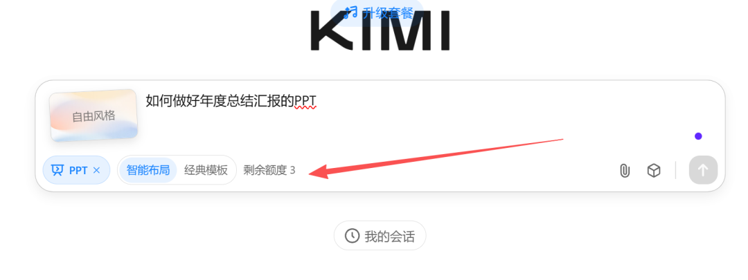 KIMI终于要收费了。赶紧看看啥情况。剩余额度不足。可免费做三个PPT。