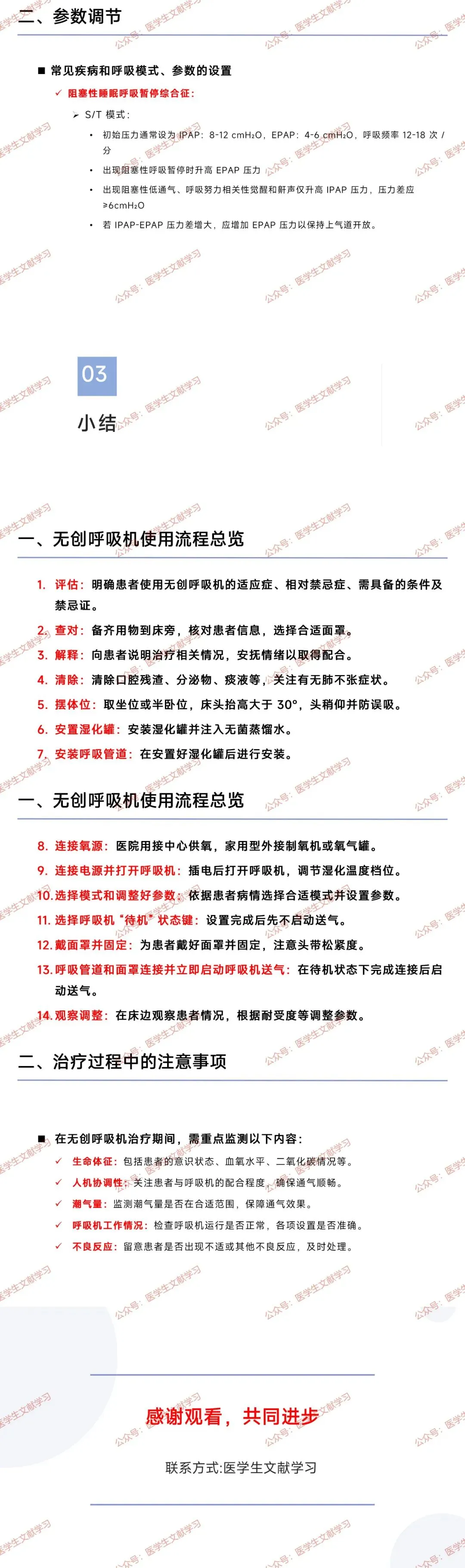 观察调整:患者刚上呼吸机时,在床边观察,根据患者的耐受情况、血氧、心率等情况调整参数。
