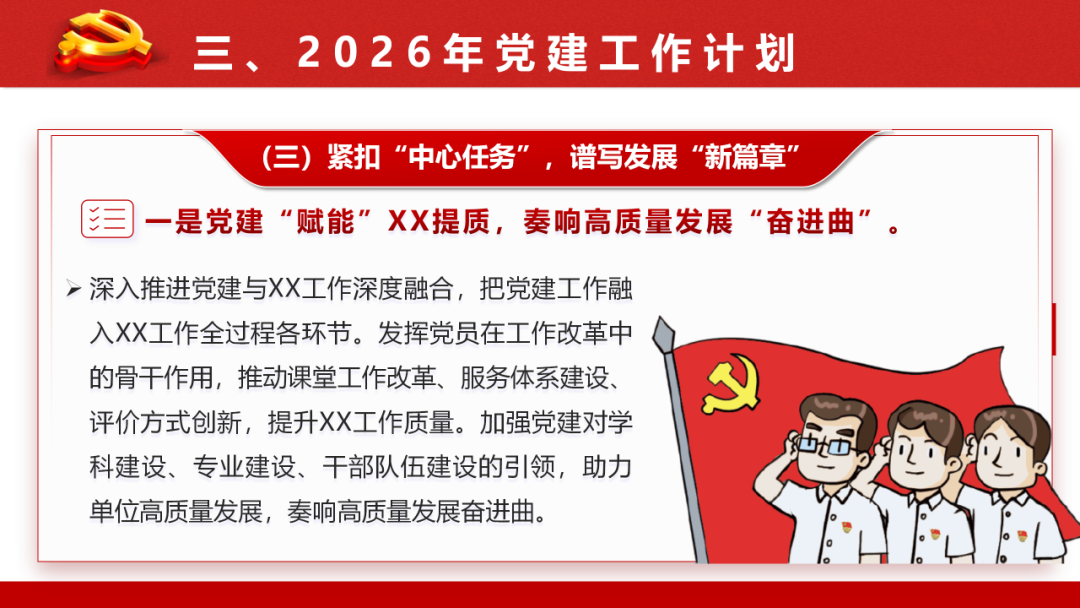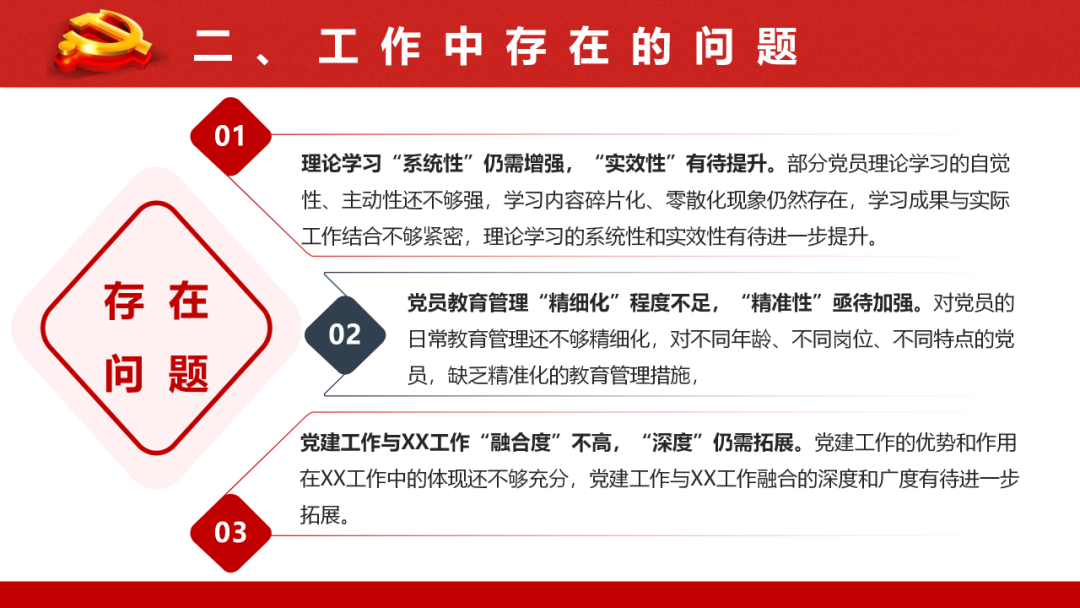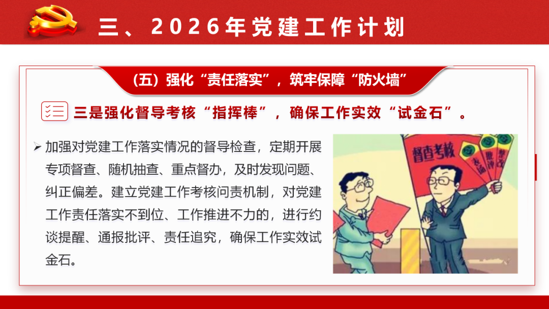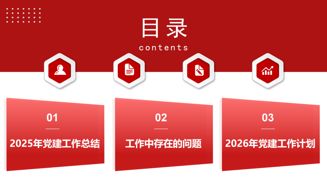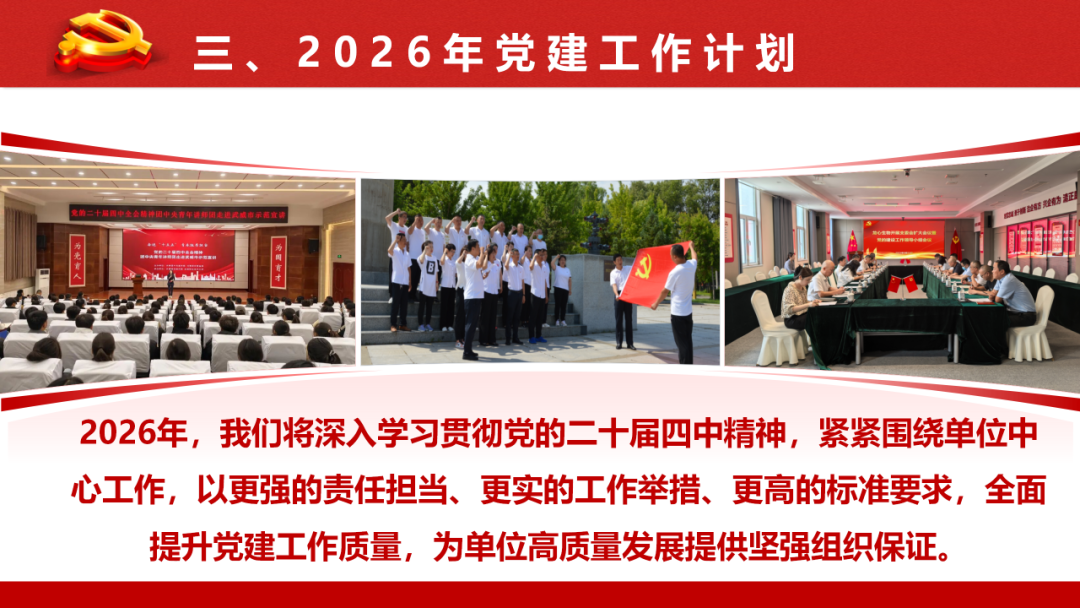 “2025年党建工作总结、工作中存在的问题、2026年党建工作计划”三个方面
