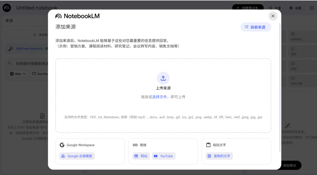 第二步:打开notebooklm(国内可能访问不了)https://notebooklm.google.com/