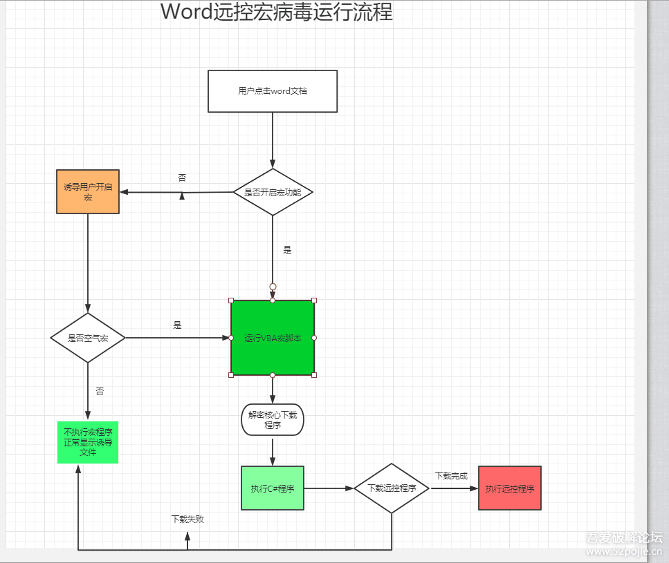这个病毒的运行需要开启宏才能执行,执行流程如下