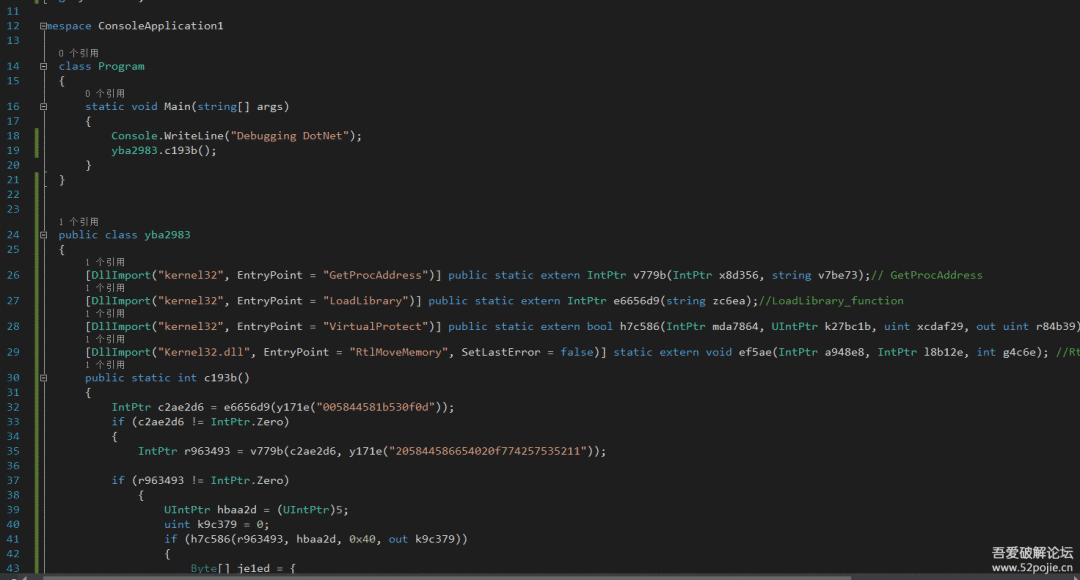 在Visual Studio 2015内新建一个C#控制台程序,并将解密出来的.Net代码拷贝到程序内,如下