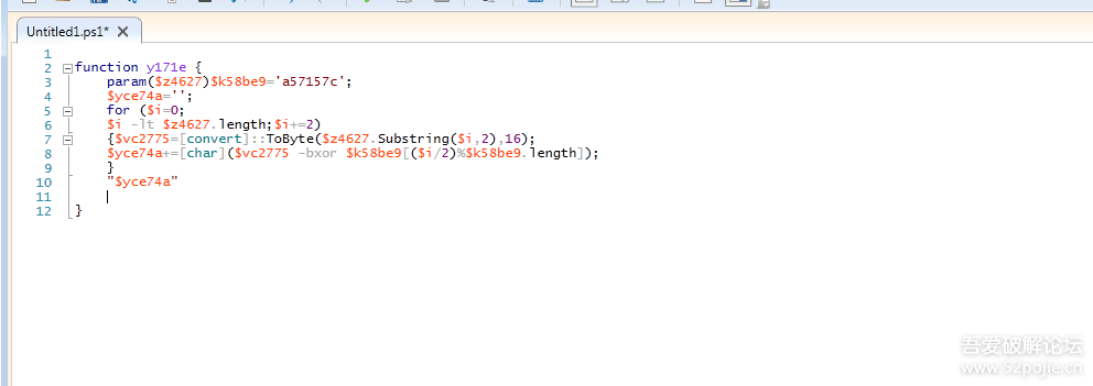 $yce74a+=[char]($vc2775 -bxor $k58be9[($i/2)%$k58be9.length]);