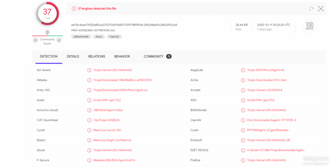 由此可以知道改程序会启动相关的脚本执行,在VT上查询该样本,被标记为Downloader
