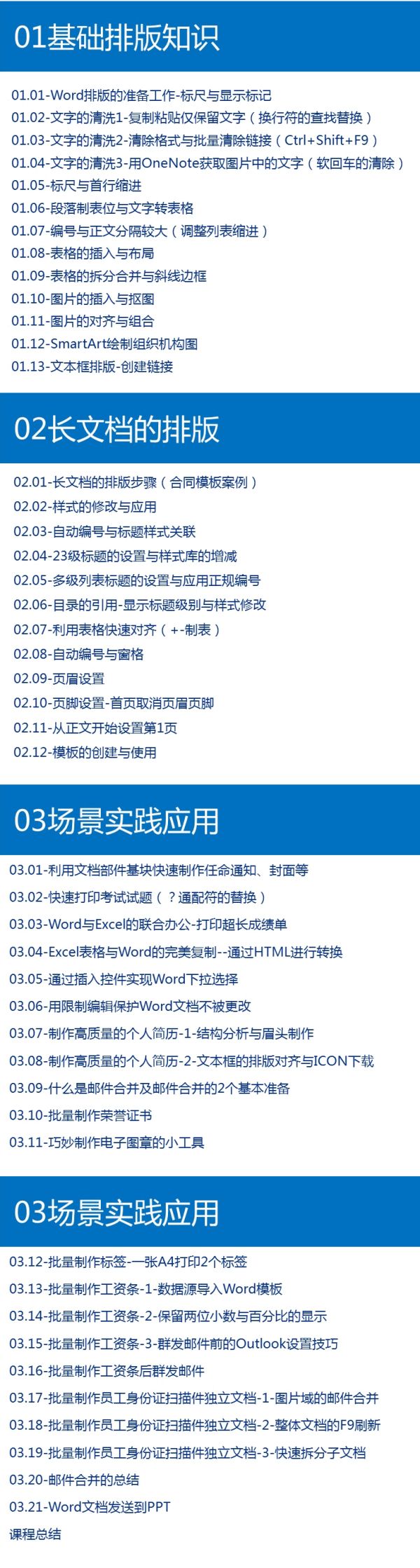 这个课程真的很适合没有学习过Word课程,没有基础的小白,或者有一定基础的大白,经过数次浓缩,课程总共只有4课时,时长在5小时以内,都是使用频率极高,操作难度不高的知识点。