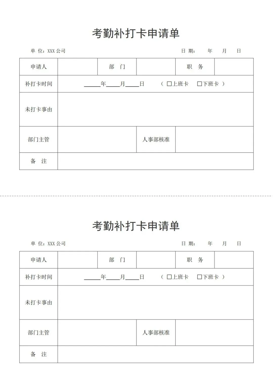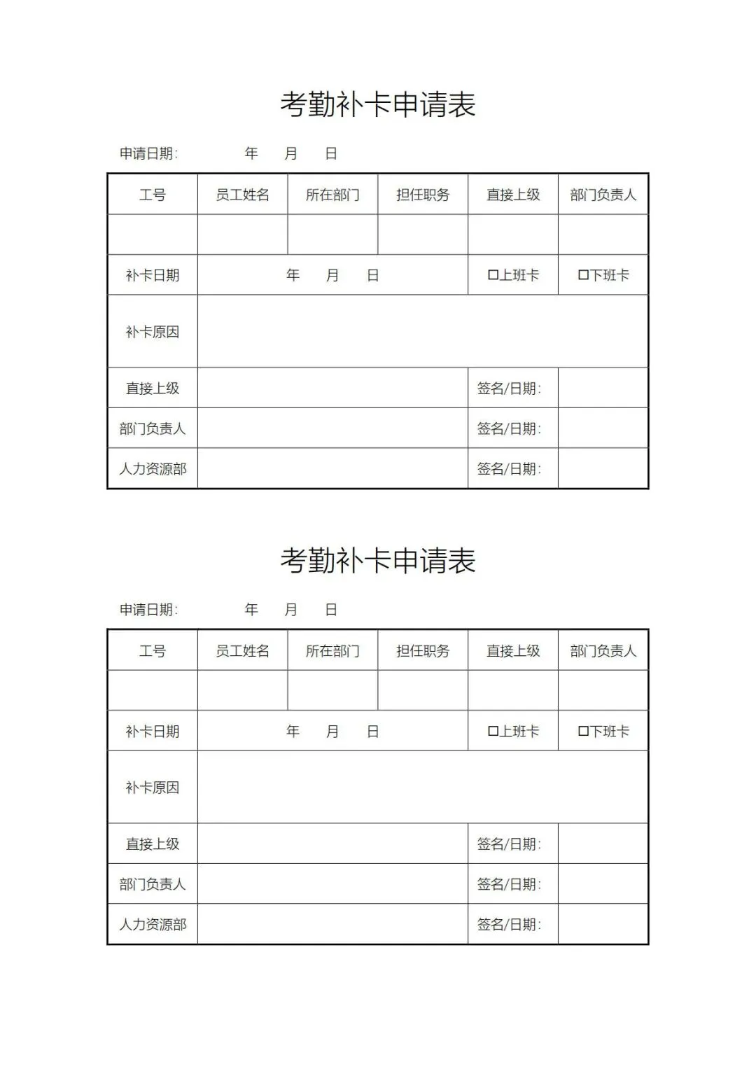 4款考勤补卡申请单模板,WORD文档电子版,可免费下载打印