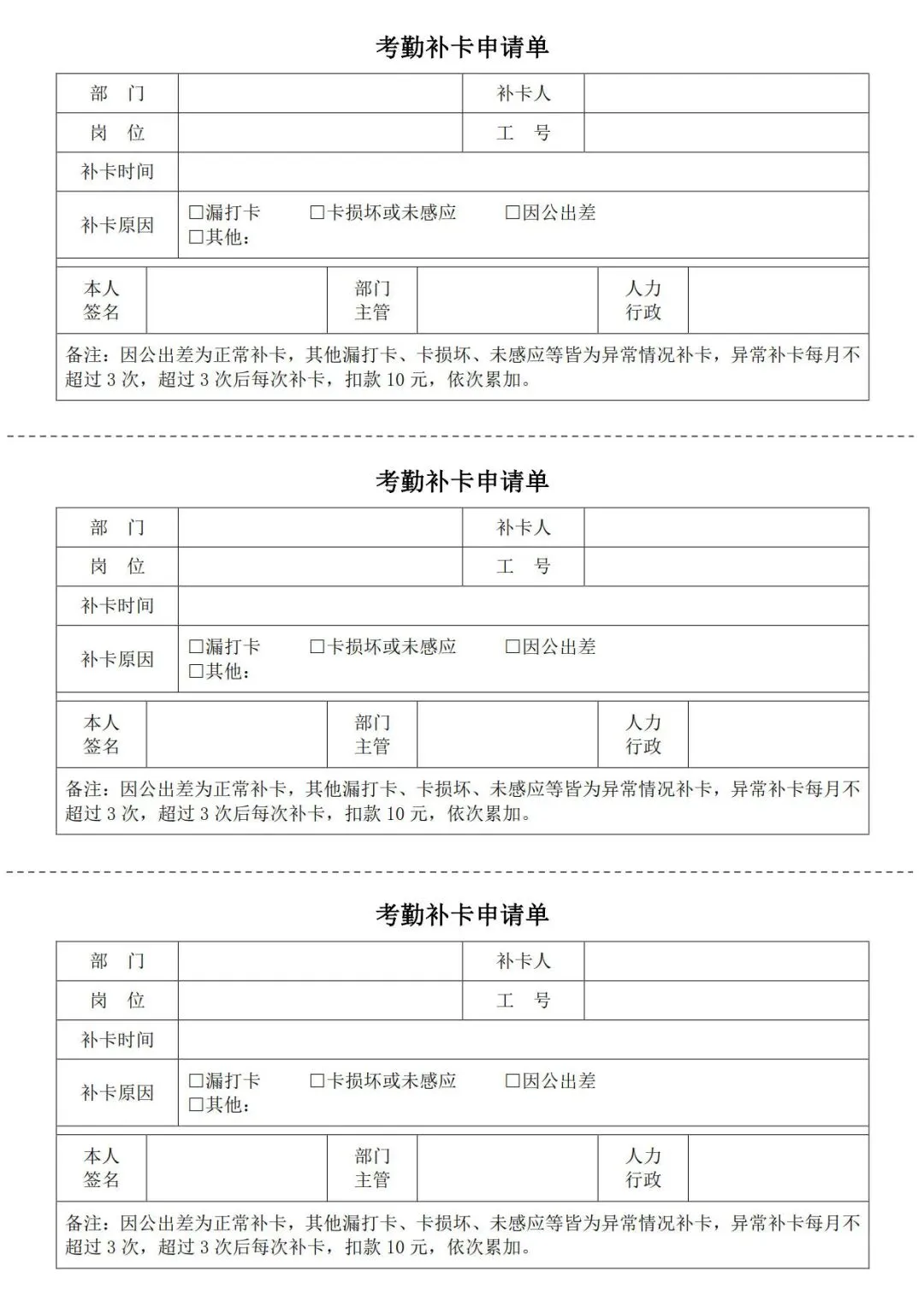 >4款考勤补卡申请单模板,WORD文档电子版,可免费下载打印