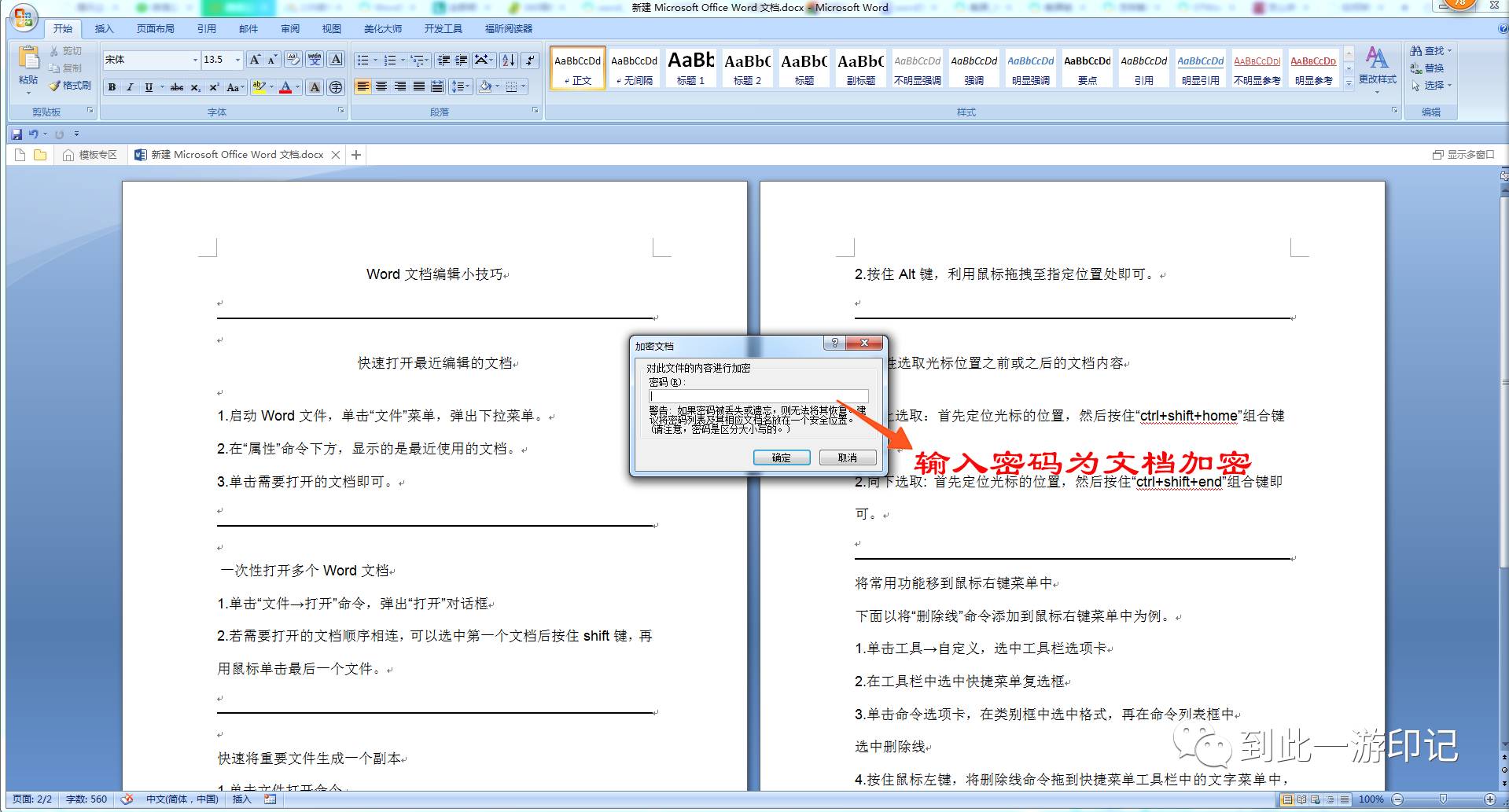 3.点击“加密文档”,输入密码为文档进行加密处理。