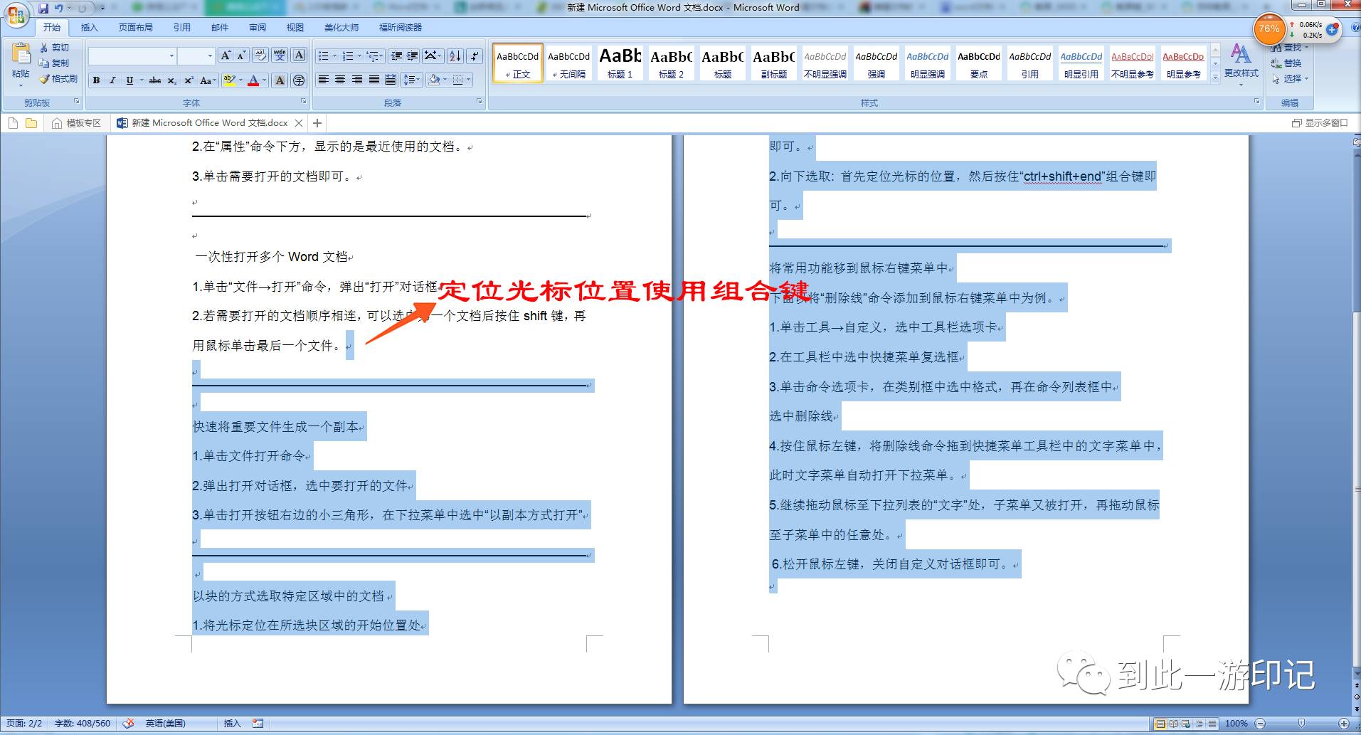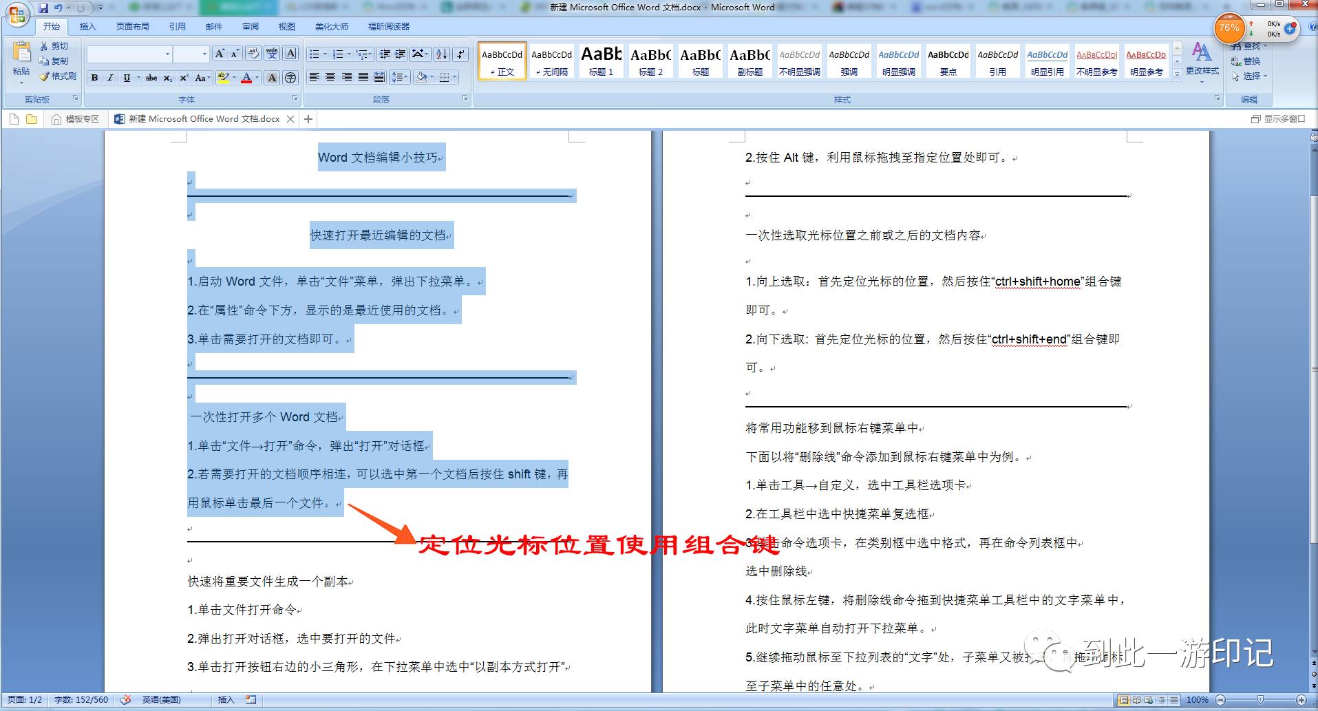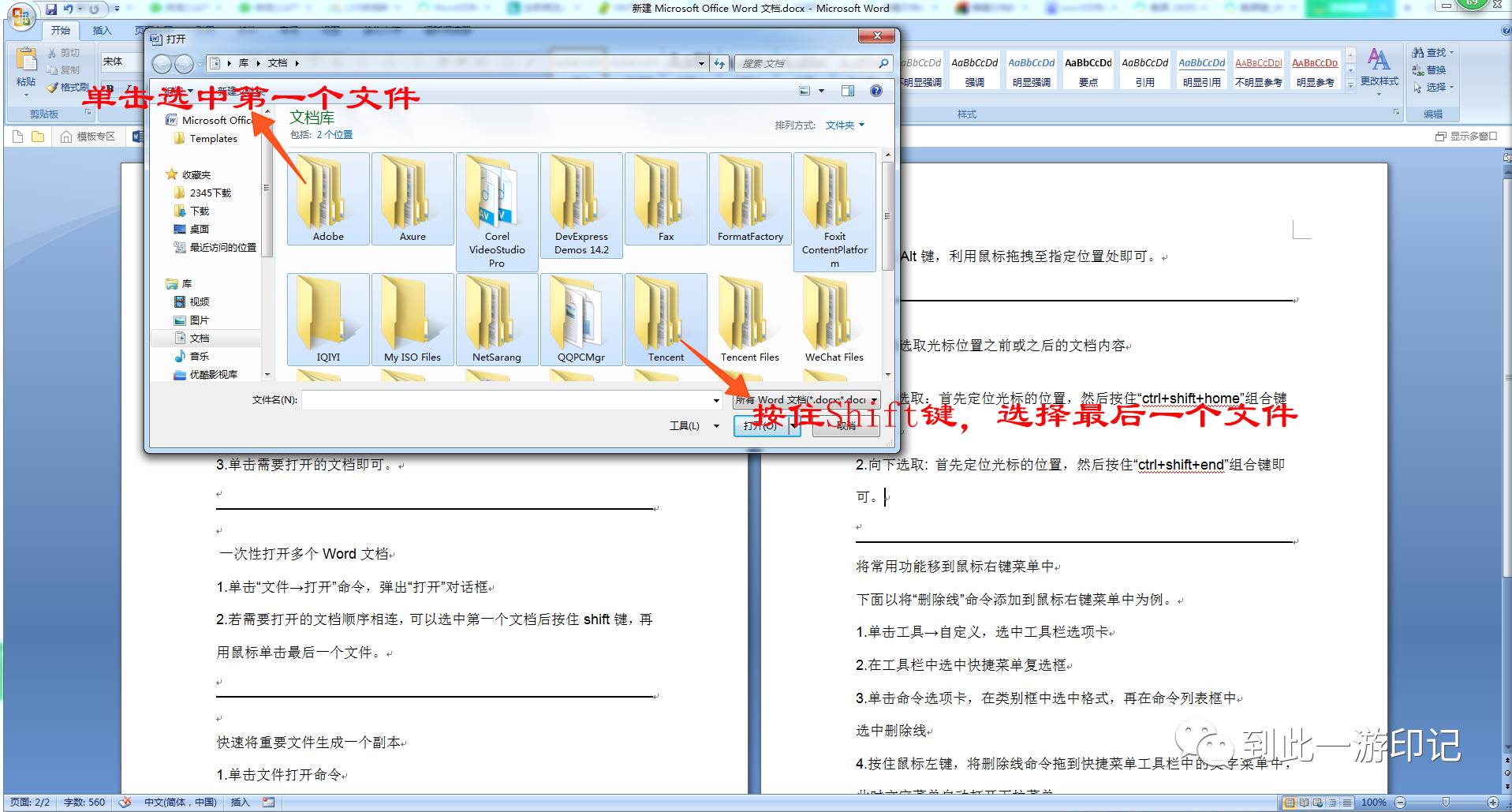 2.若需要打开的文档顺序相连,可以选中第一个文档后按住shift键,再用鼠标单击最后一个文件。