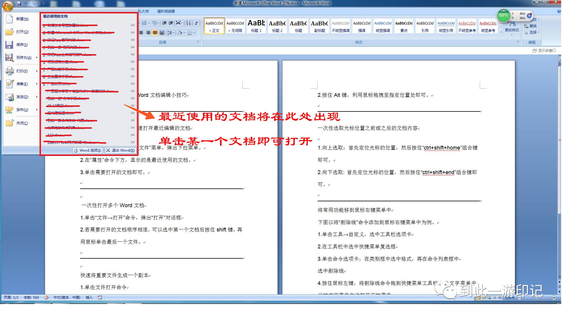 2.在“属性”命令下方,显示的是最近使用的文档。