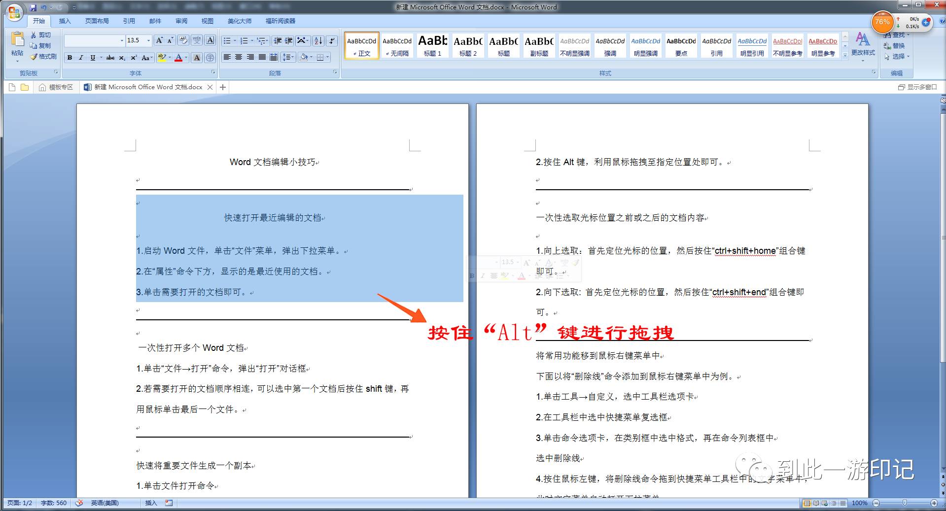 2.按住Alt键,利用鼠标拖拽至指定位置处即可。