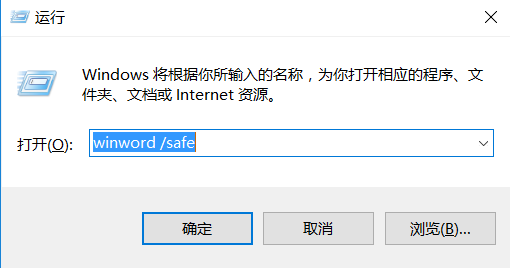 方法3:Win+R弹出运行框,输入Winword /safe以安全模式打开word软件
