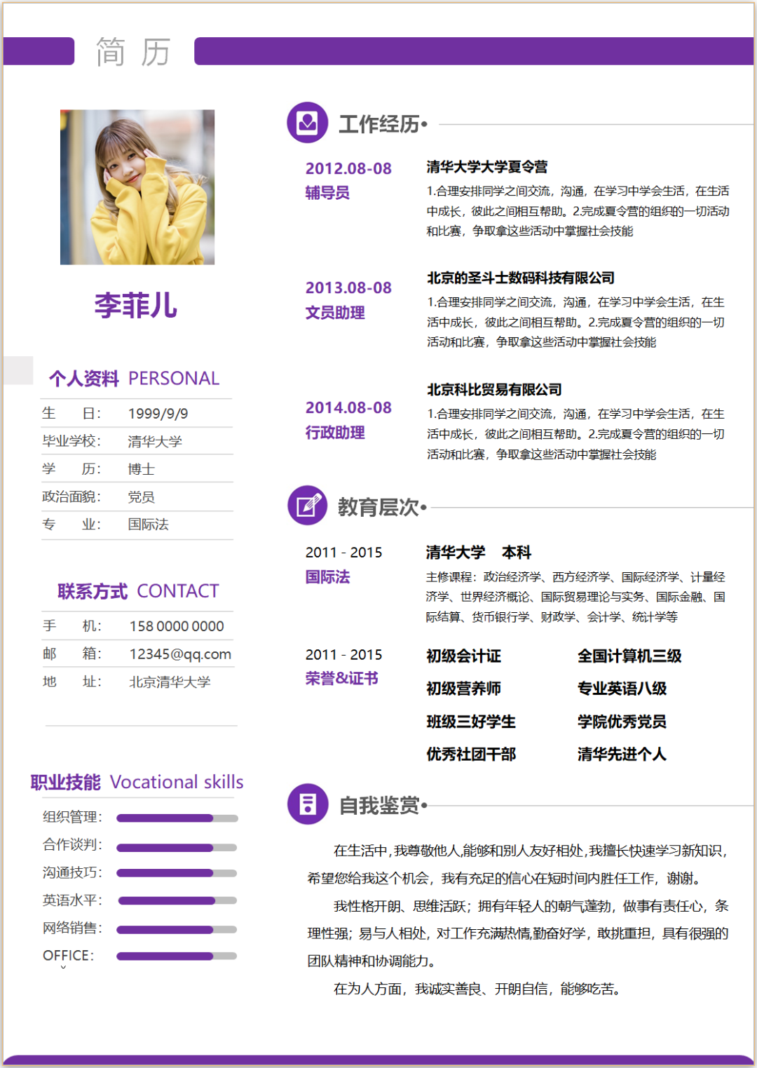 8款简历表格标准模板,WORD文档电子版,可免费下载打印
