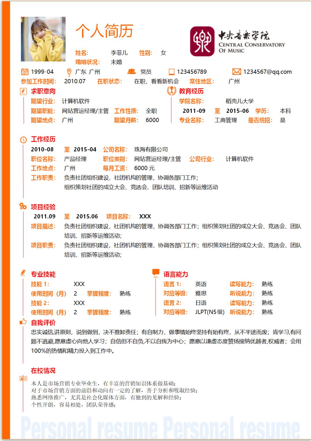 7款漂亮实用的个人简历模板,WORD文档电子版,可免费下载打印
