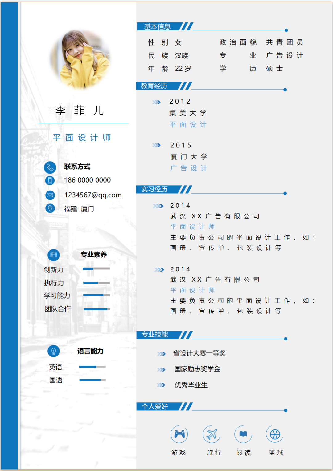 8款带封面个人简历模板,WORD文档电子版,可免费下载打印