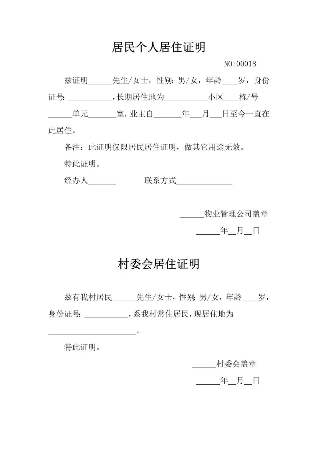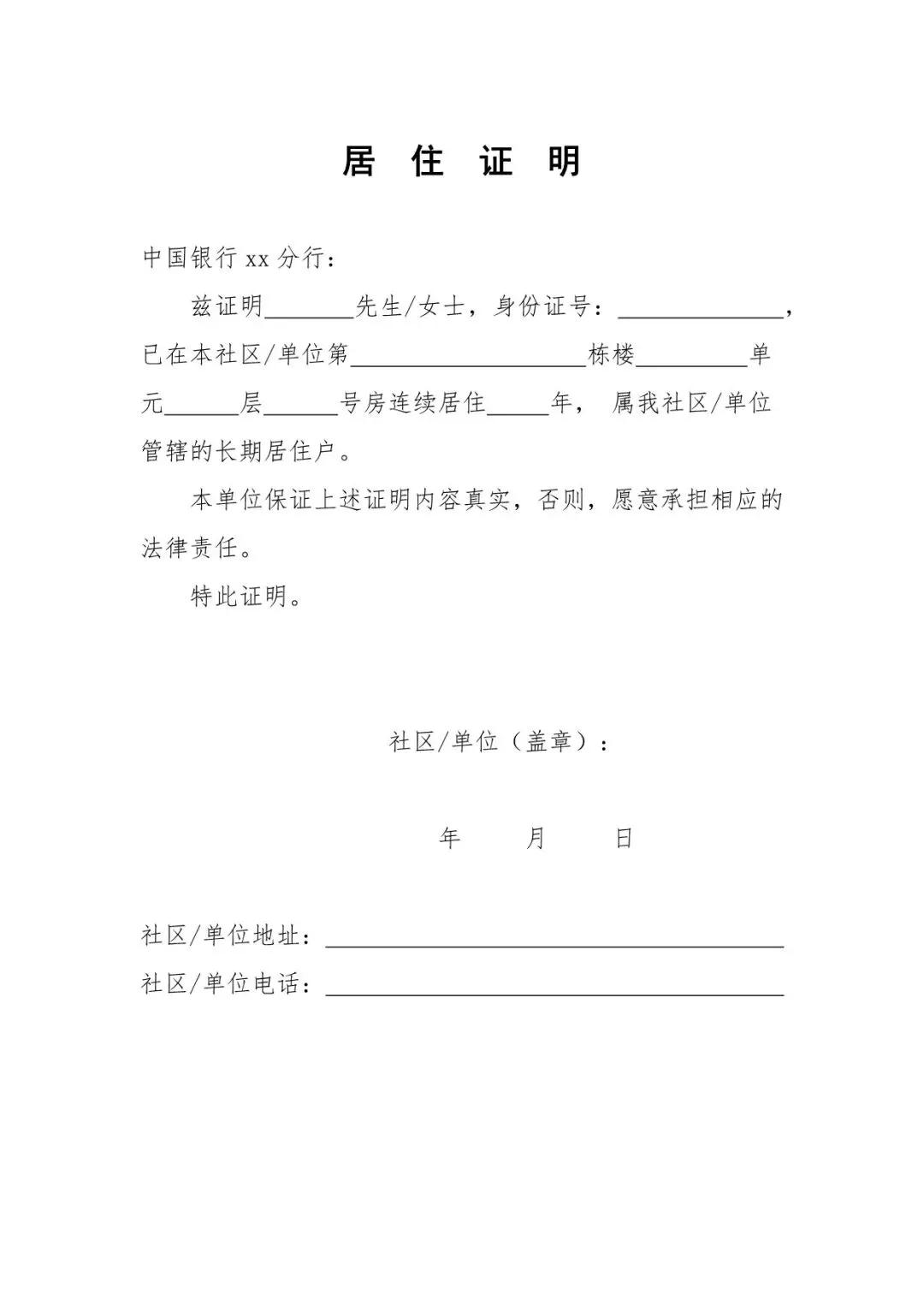 >居住证明模板(Word文档可编辑)