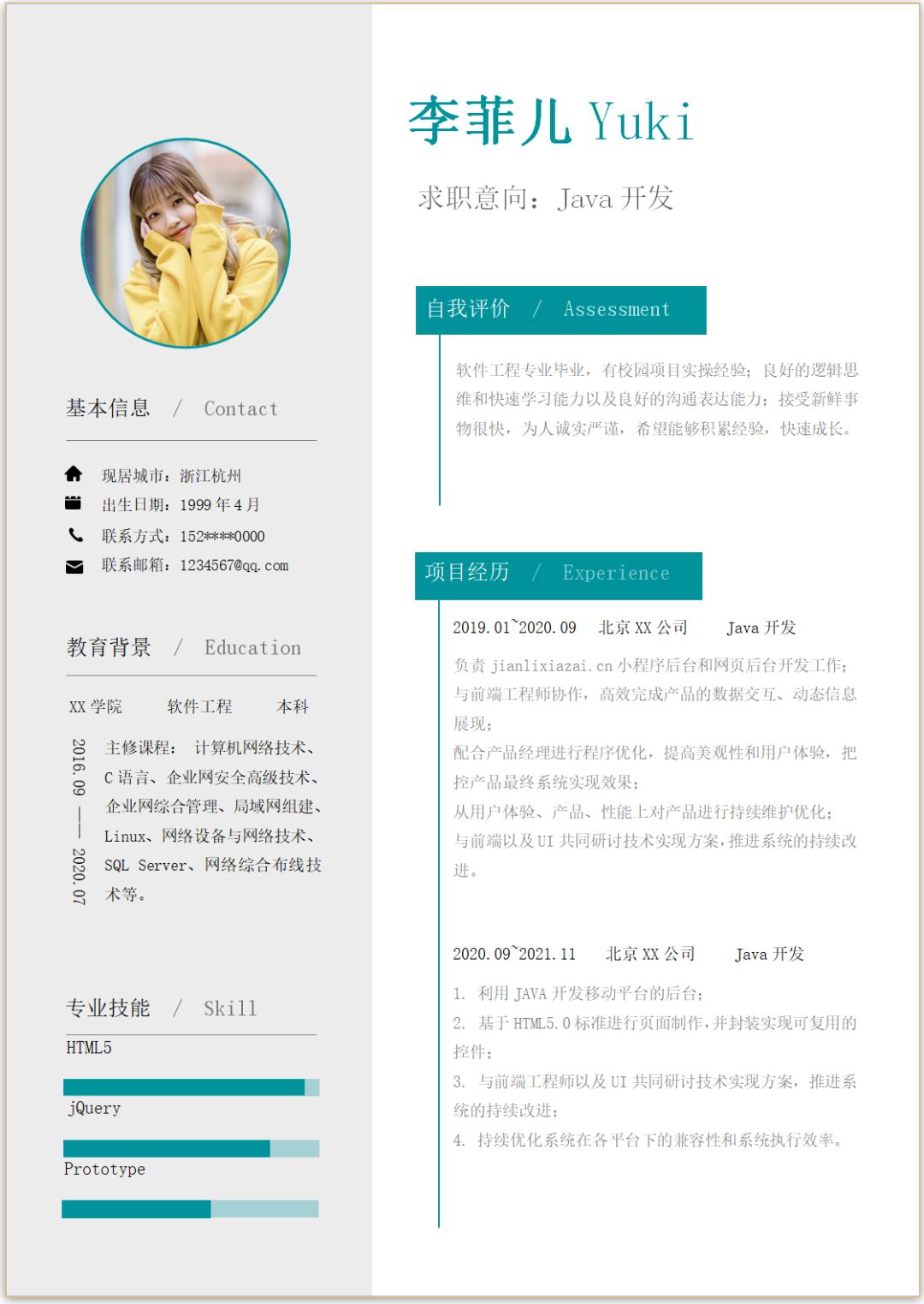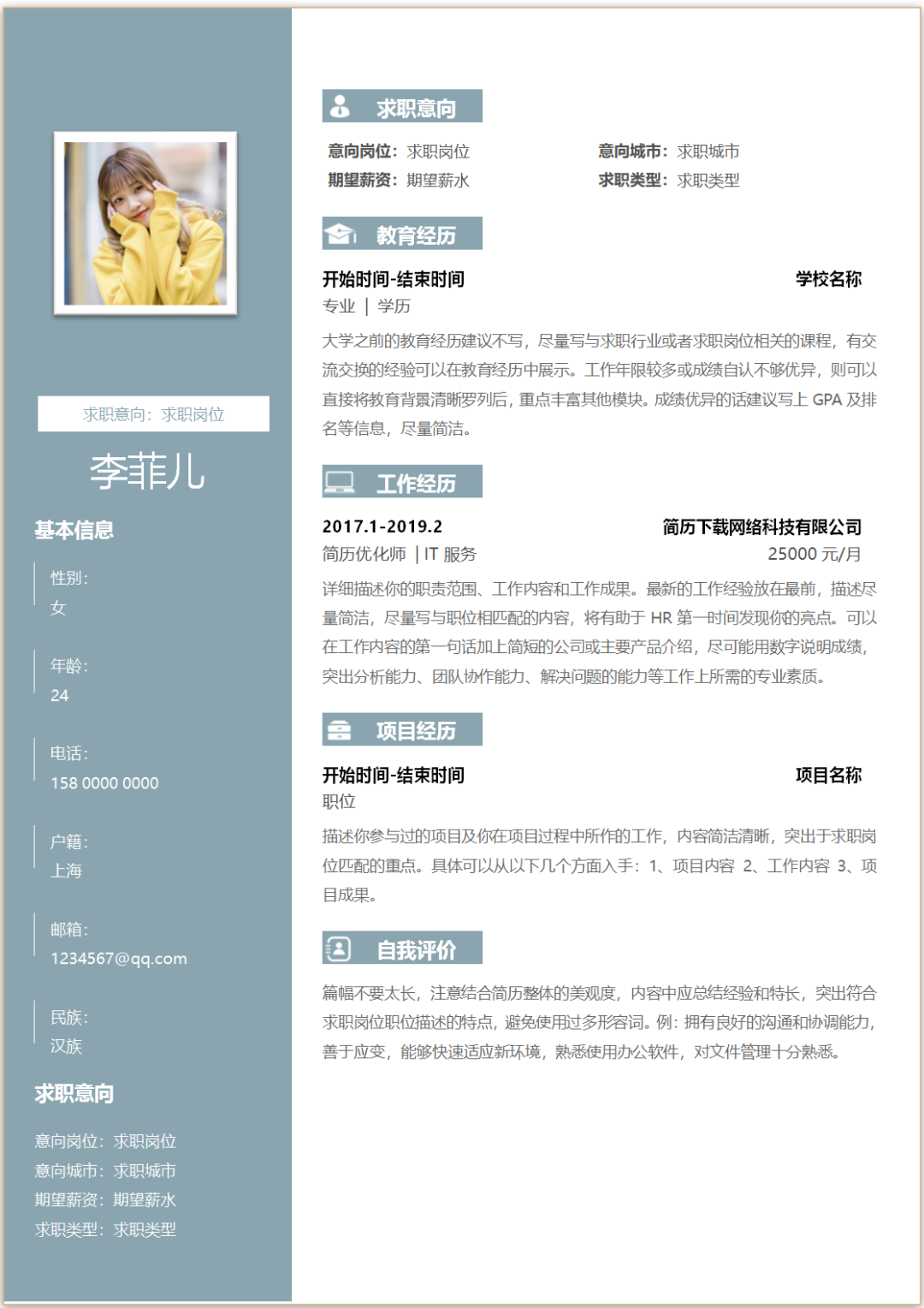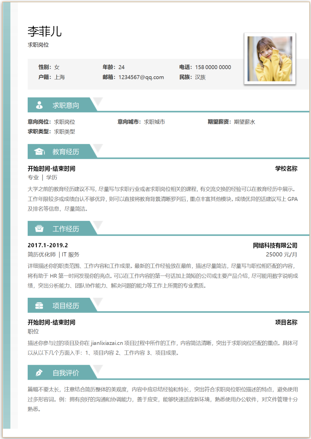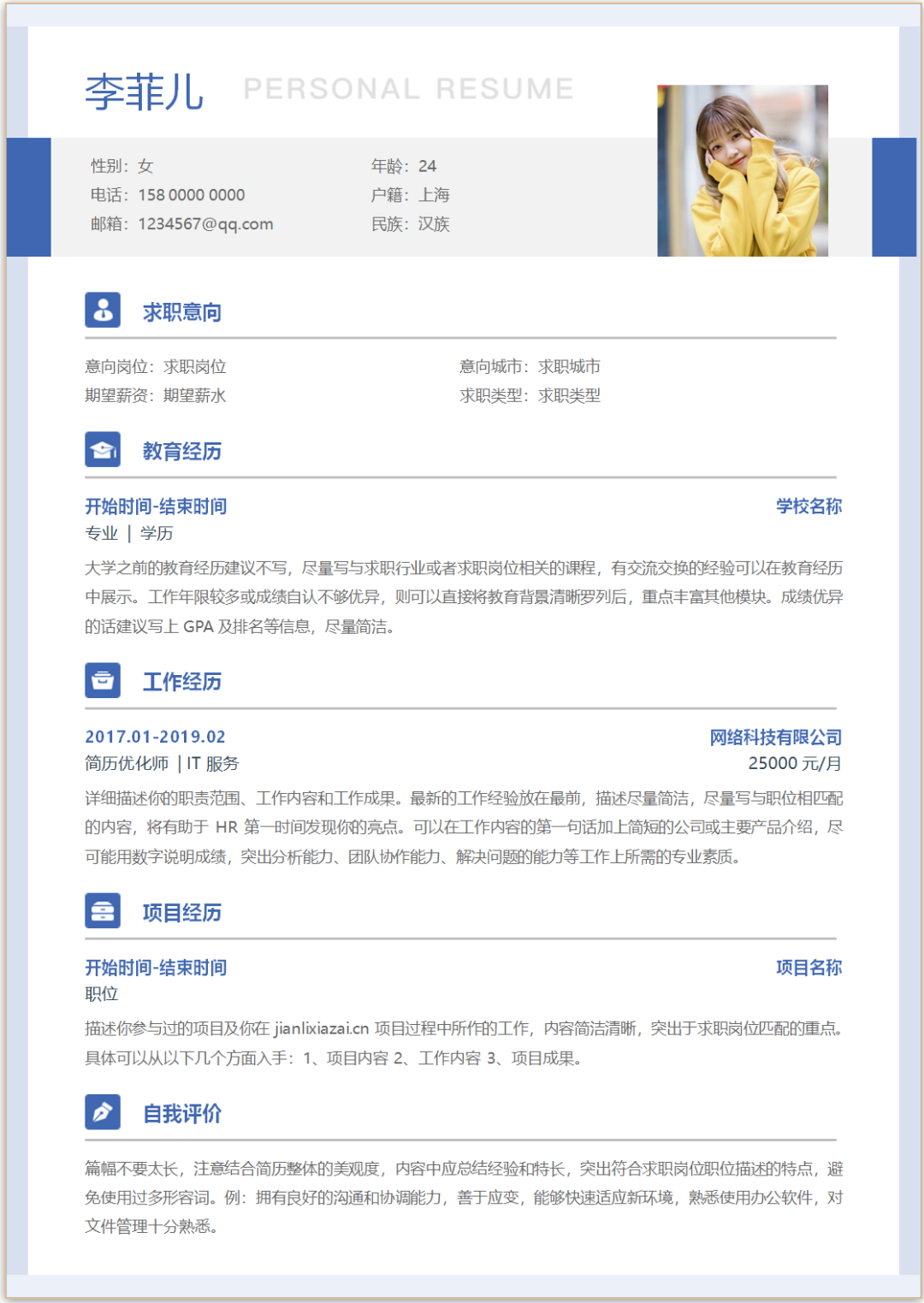 求职通用个人简历模板(Word文档可编辑)
