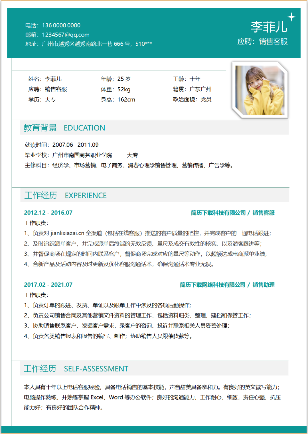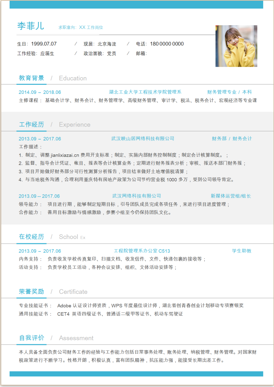 7款清新的个人简历模板,WORD文档电子版,可免费下载打印
