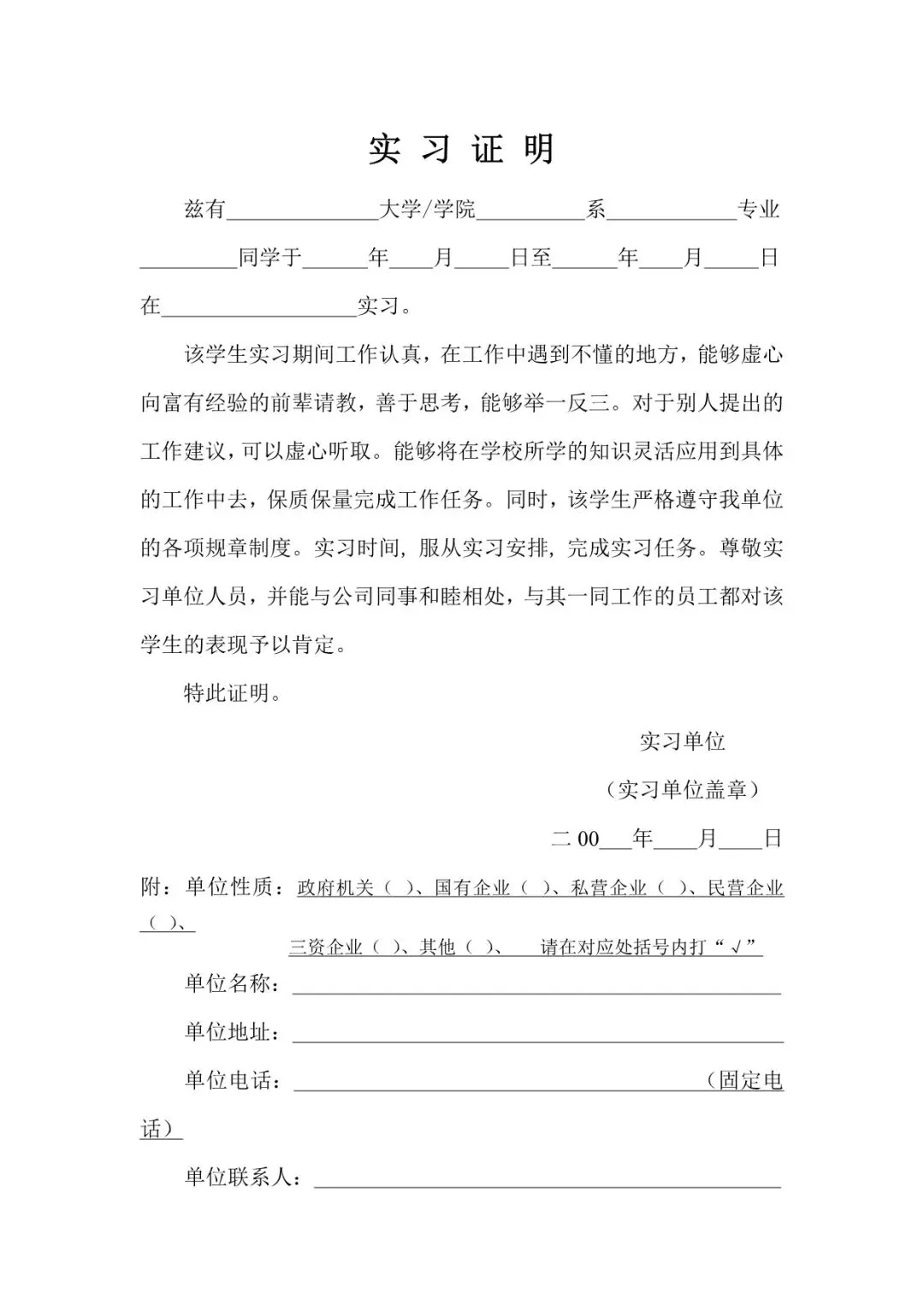 【实习证明】