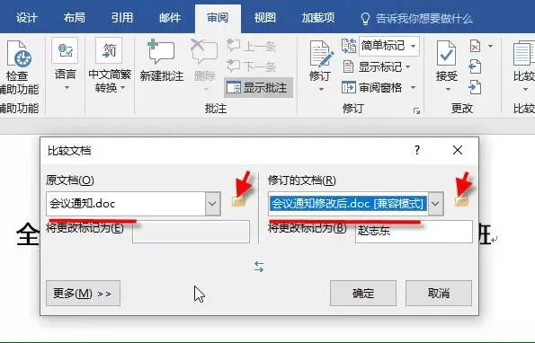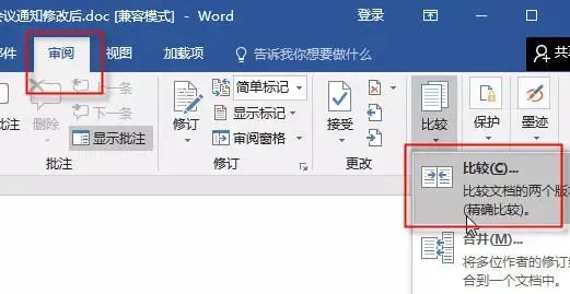 1、审阅 - 比较 - 比较两个文档不同(精确比较)