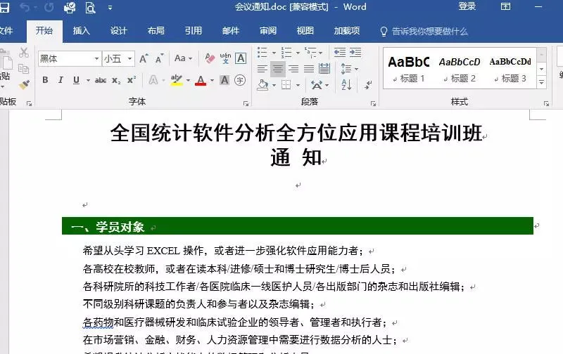 领导发来一篇用word编辑的培训会议通知,让你修改。