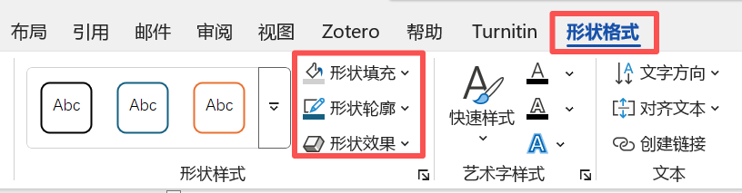 插入后,选中文本框会自动出现 “绘图工具-格式” 选项卡。