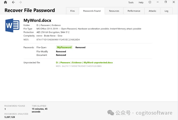 使用高级攻击恢复 Word 打开密码。保存并检查其他文件的所有已恢复密码。