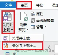 8. 选择工具栏的“主页”-->“关闭并上载”-->“关闭并上载至”