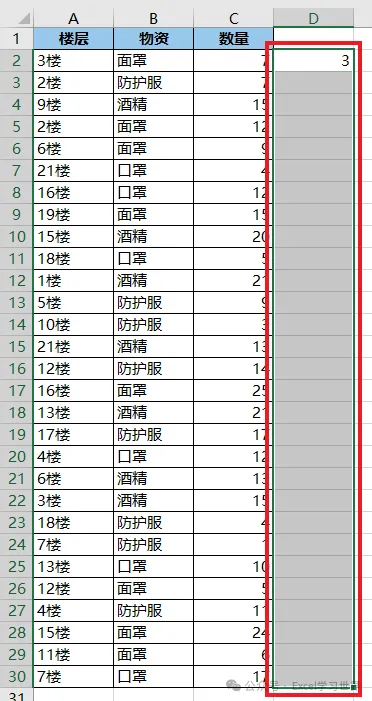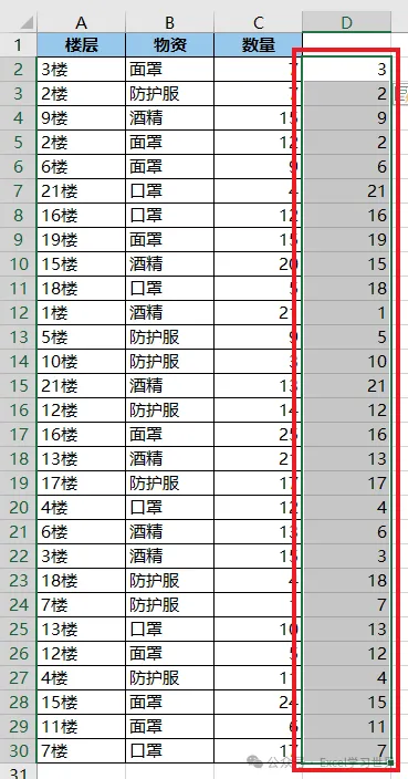 2. 选中 D2:D30 区域 --> 按 Ctrl+E