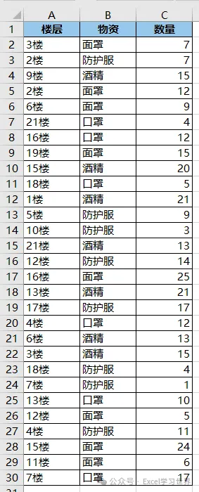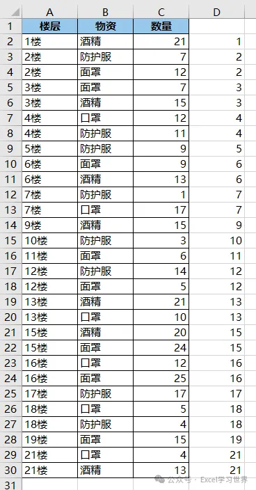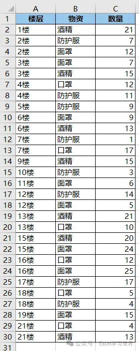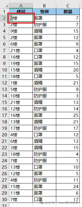 将下图 1 的数据表按楼层升序排序,效果如下图 2 所示。