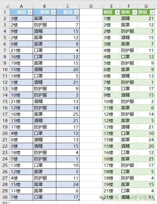 右边绿色的表格就是所需结果。这种方法与前一种方法的原理一样,区别是这种方法更灵活,左边的表格但凡有更新,只需要将绿色的表格刷新一下,就能同步更新结果。