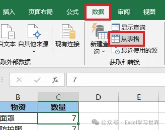 1. 选中数据表的任意单元格 --> 选择工具栏的“数据”-->“从表格”