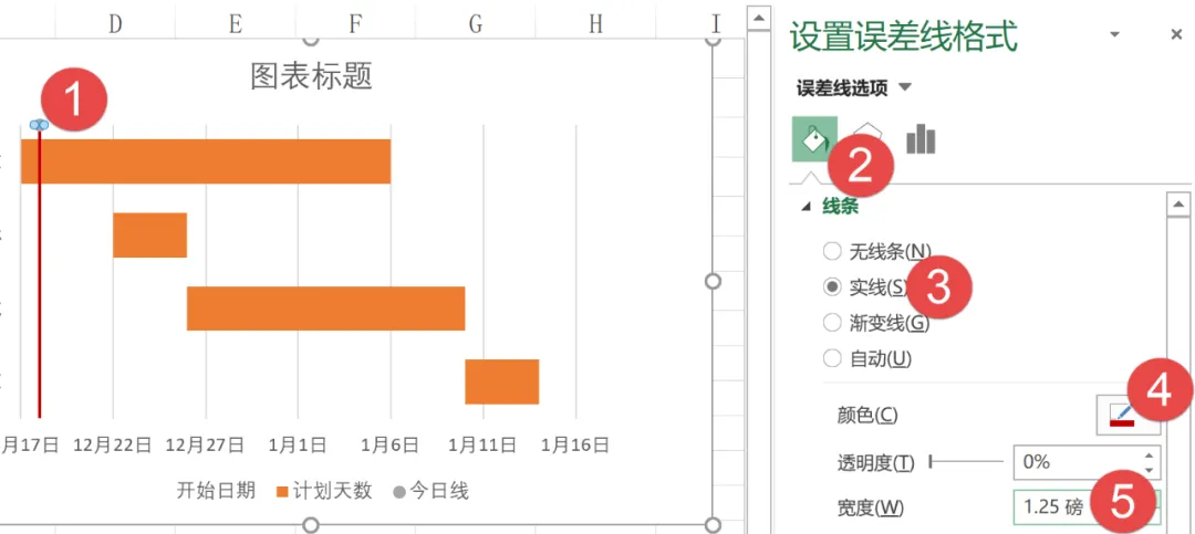 设置误差线线条颜色和宽度