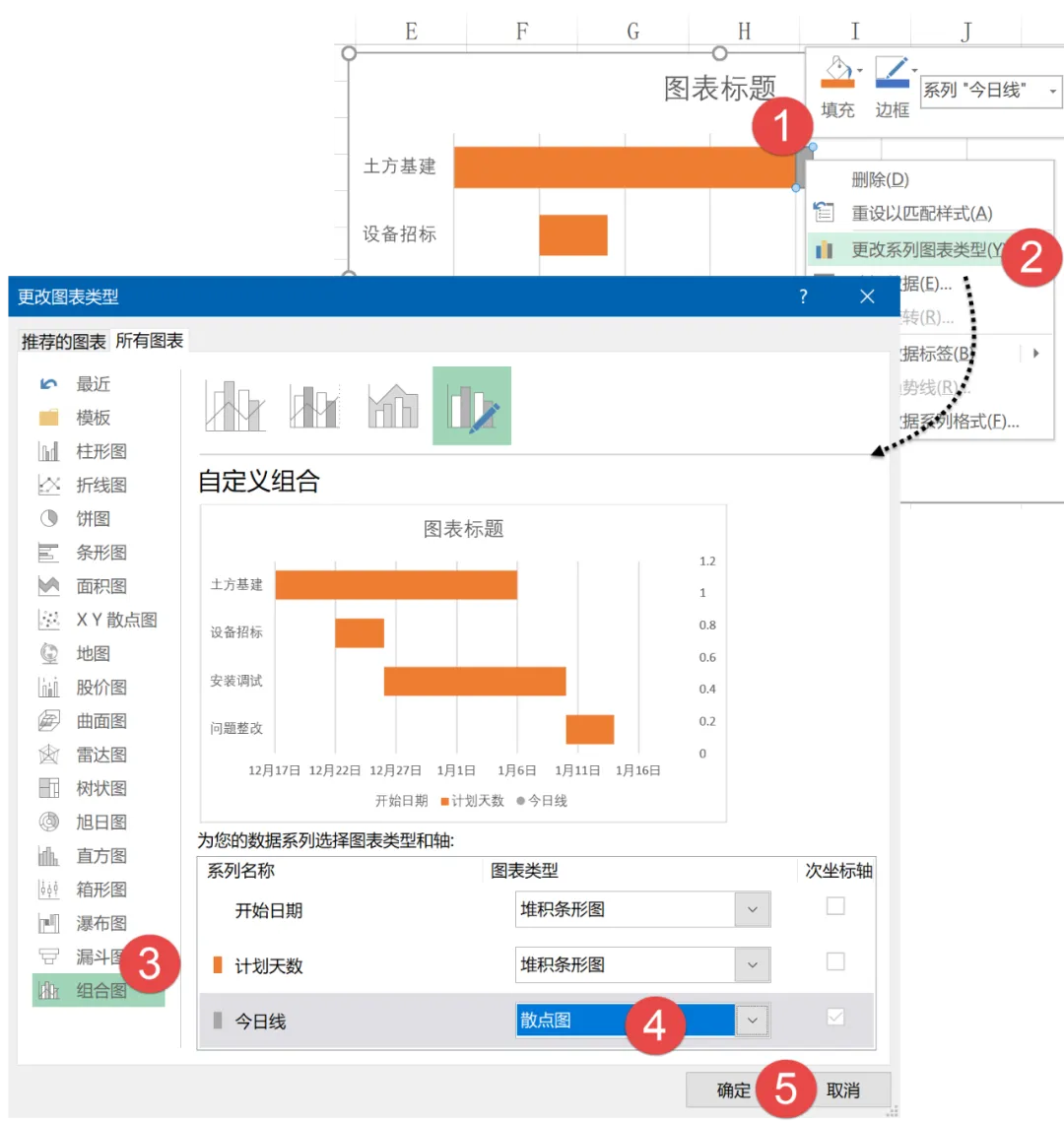 关键步骤到了,咱们要添加一个散点图,来制作图表中的今日线。