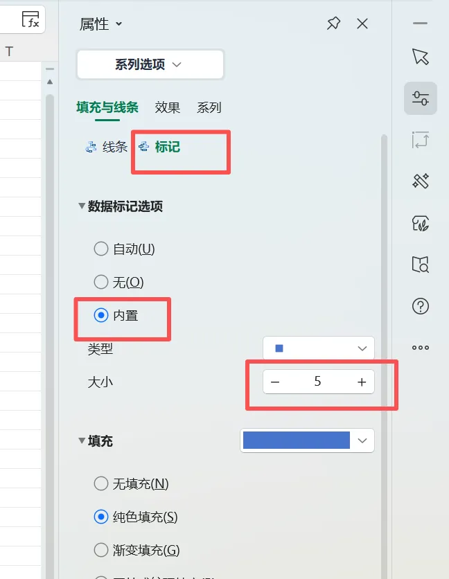 点击标记---选择内置---调整大小和颜色