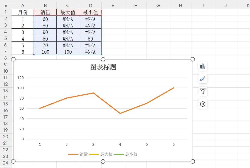 Excel在折线图中动态标注最大最小值