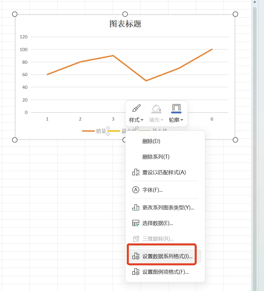 选中图表中最大值,右键设置数据系列格式