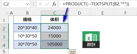 ❶ 首先用 TEXTSPLIT 函数将 B2 字符串按星号拆分成一列显示;TEXTSPLIT 函数的作用是根据分隔符拆分字符串。TEXTSPLIT(文本,列分隔符,[行分隔符],[是否忽略空值],[填充文本])❸ 最后用 PRODUCT 函数求乘积,就得到体积。TEXTSPLIT 函数,目前仅允许安装 Office365 且加入预览体验计划的小伙伴使用。针对这个新函数,我们之前也出过文章详细讲解,大家可以戳下面的文字链接查看↓↓↓❶ TEXT 函数是使用频率非常高的文本函数,它可以根据格式代码设置数字的各种文本样式。觉得还没学够,点击下方文字链接看往期文章:❷ TEXTJOIN 函数可以将区域的字符按指定的规则,连接成字符串,解决了按照条件合并文本的难题;❸ TEXTSPLIT 函数的作用是按照特定的分隔符拆分字符串,是一个强大的文本拆分函数。亲爱的小伙伴,如果本篇文章对你有帮助或有所启发,欢迎「点赞」、「评论」和「转发」哦,你们的支持是我分享的动力~📑