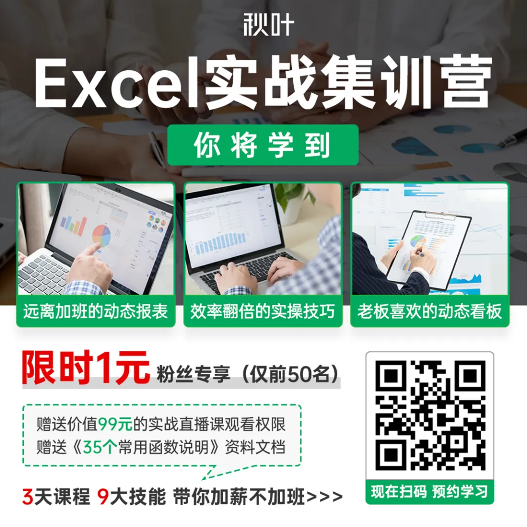 如果你想学习更多神奇的 Excel 函数,那么千万别错过这次的《3 天 Excel 集训体验营》!