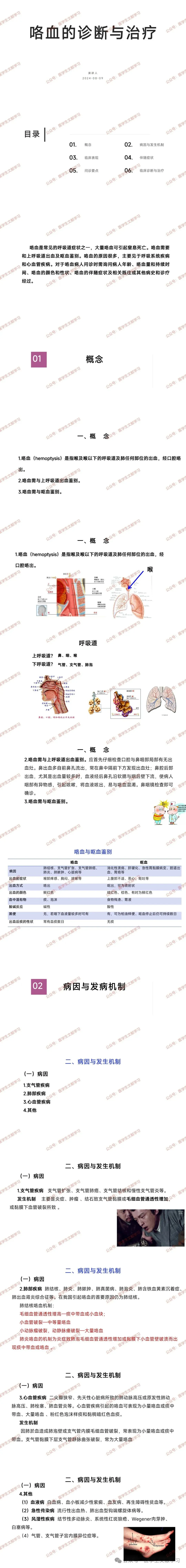 临床诊治思维及路径:接诊患者后,应除外口腔、鼻腔出血、上消化道出血,对于咯血患者,根据病情分为急性、短时大量咯血和慢性、少量、中量咯血,前者危及生命,需紧急处理,对于预后不良的传染性疾病、恶性疾病等,应及时诊断和治疗。