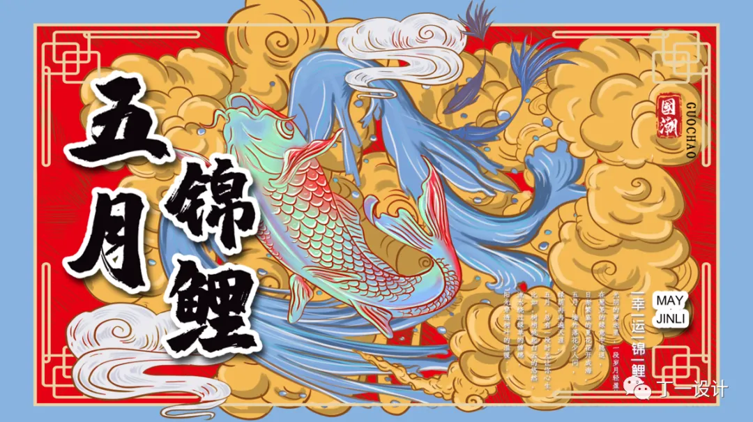 在色彩上,国潮风大胆奔放,整体色调明度、饱和度较高,给人热烈活泼的感觉。常使用明黄、中国红、橘红、湖蓝等等色彩,