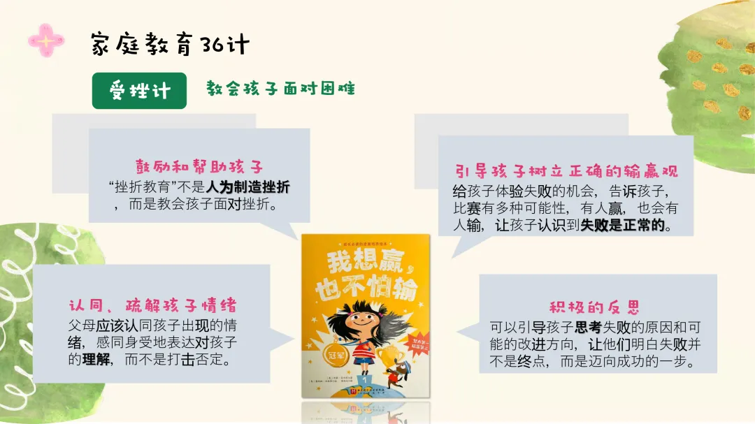 帮助孩子进行积极的反思是培养他们从失败中学习的重要步骤。我们可以引导他们思考失败的原因和可能的改进方向,让他们明白失败并不是终点,而是迈向成功的一步。