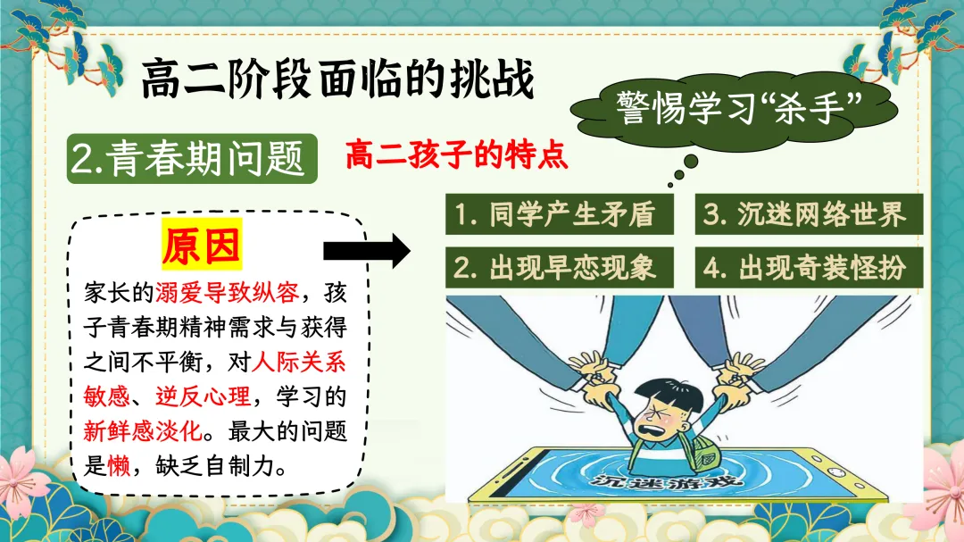 高二,恰似一场马拉松赛程中的关键弯道,既承接了高一的青涩奠基,又开启向高三巅峰冲刺的蓄力前奏。然而,我们也深知,成长之路布满荆棘。步入高二,学业压力呈指数级增长,各学科知识深度挖掘、综合运用的要求愈发严苛,频繁的考试、起伏的成绩,如同汹涌浪潮,不时冲击着孩子们的内心防线。与此同时,他们正处于身心快速发展的青春期,情绪波动、自我认知迷茫等问题也悄然滋生。