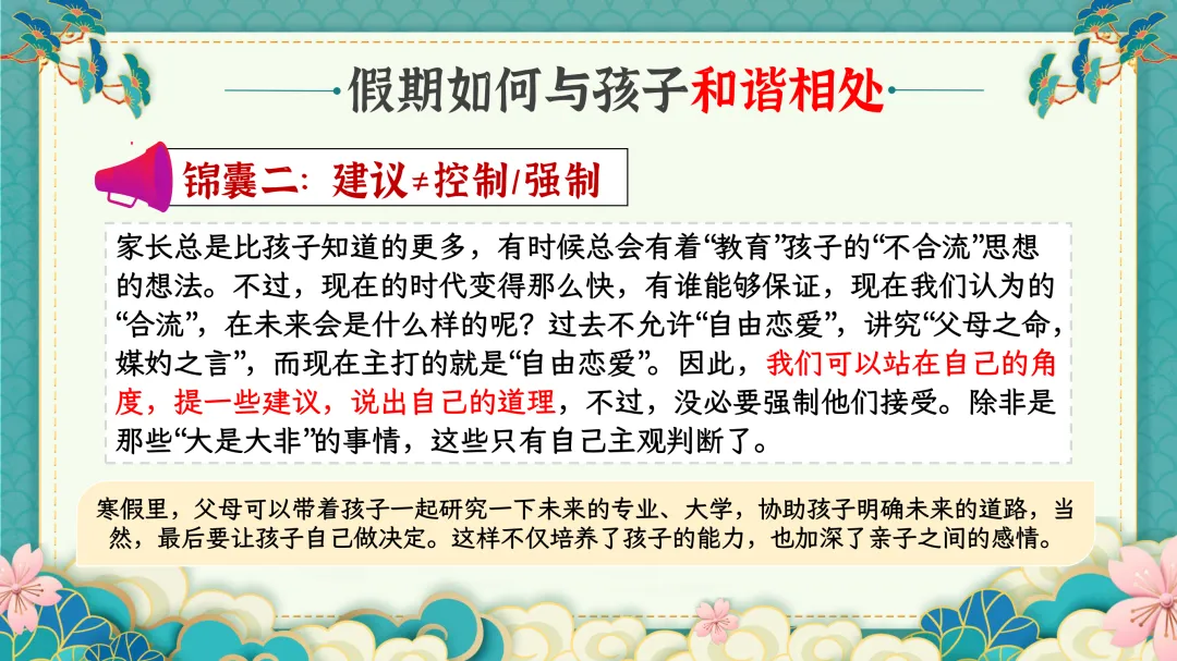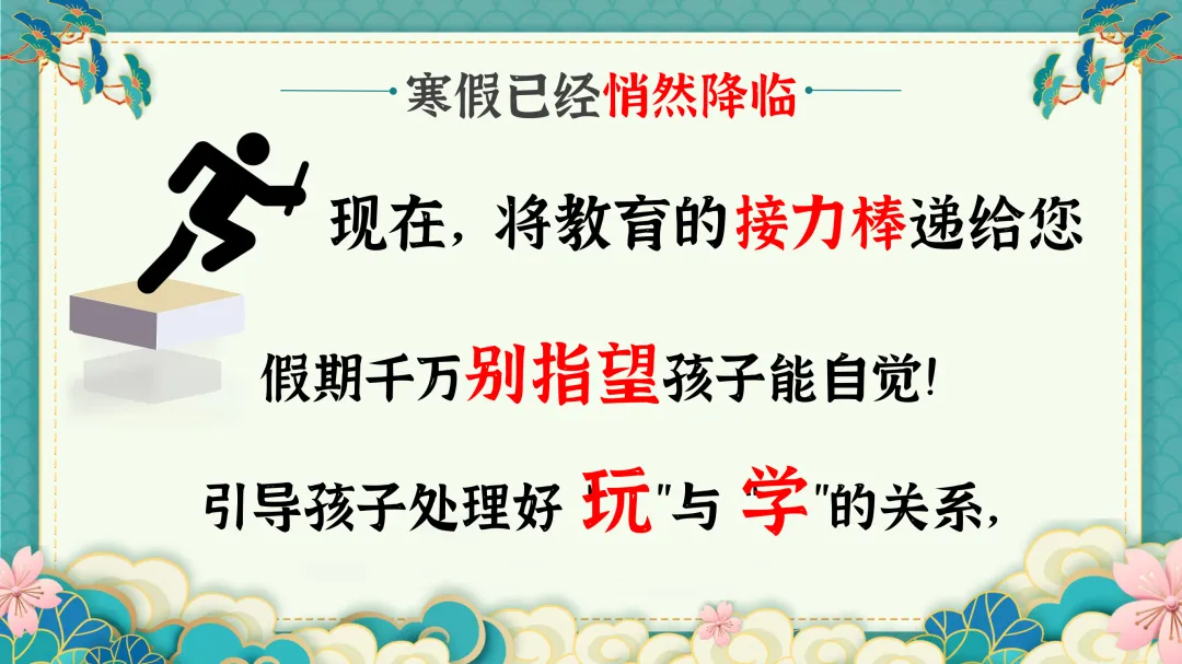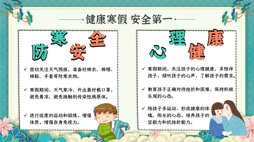 ·寒假期间,关注孩子的心理健康,多陪伴孩子,倾听孩子的心声,了解孩子的需求。