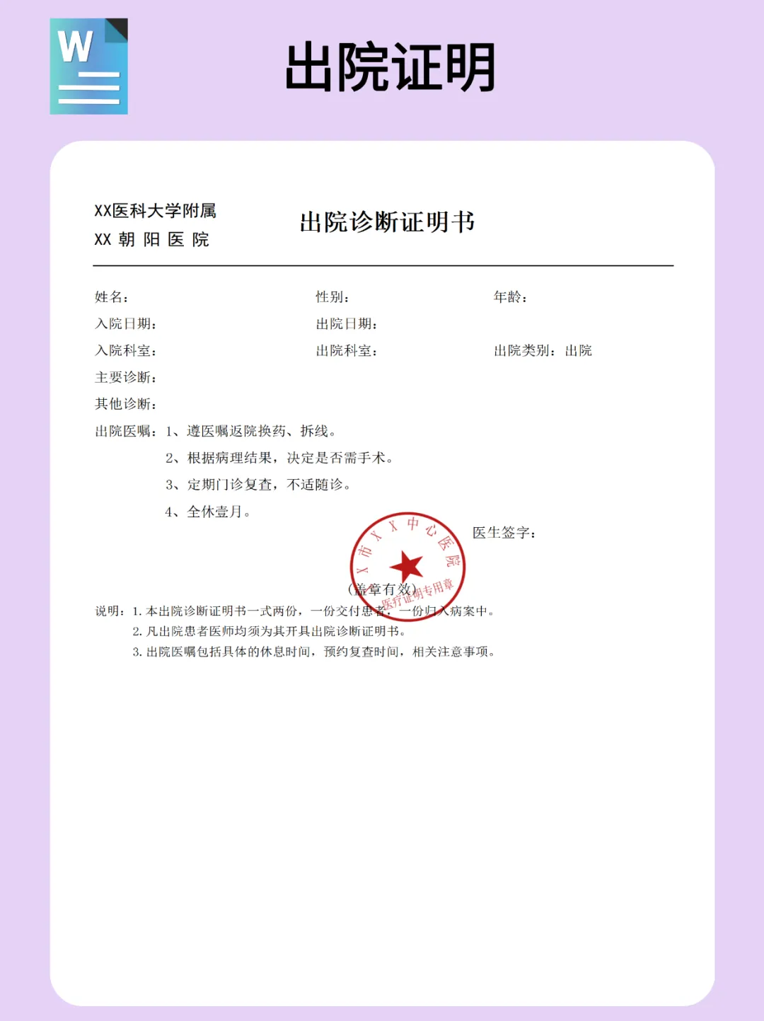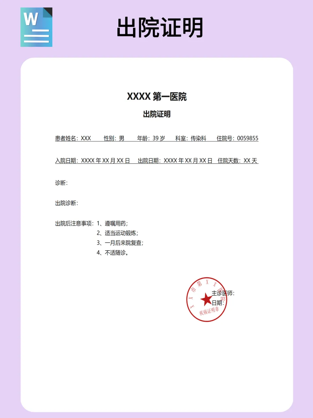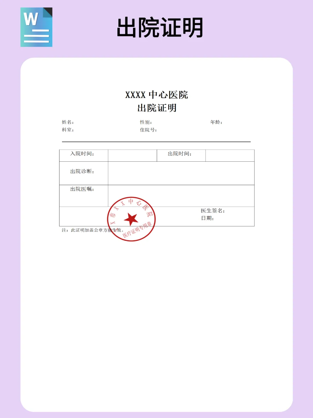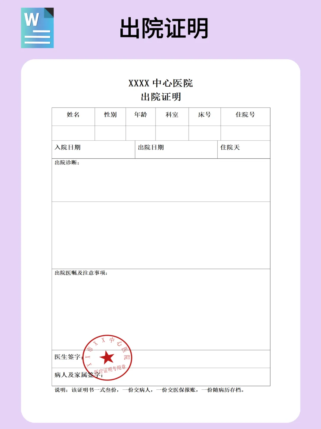 【出院证明】12款医院出院证明模板,WORD文档电子版,可自行编辑打印,夸克网盘免费分享下载!