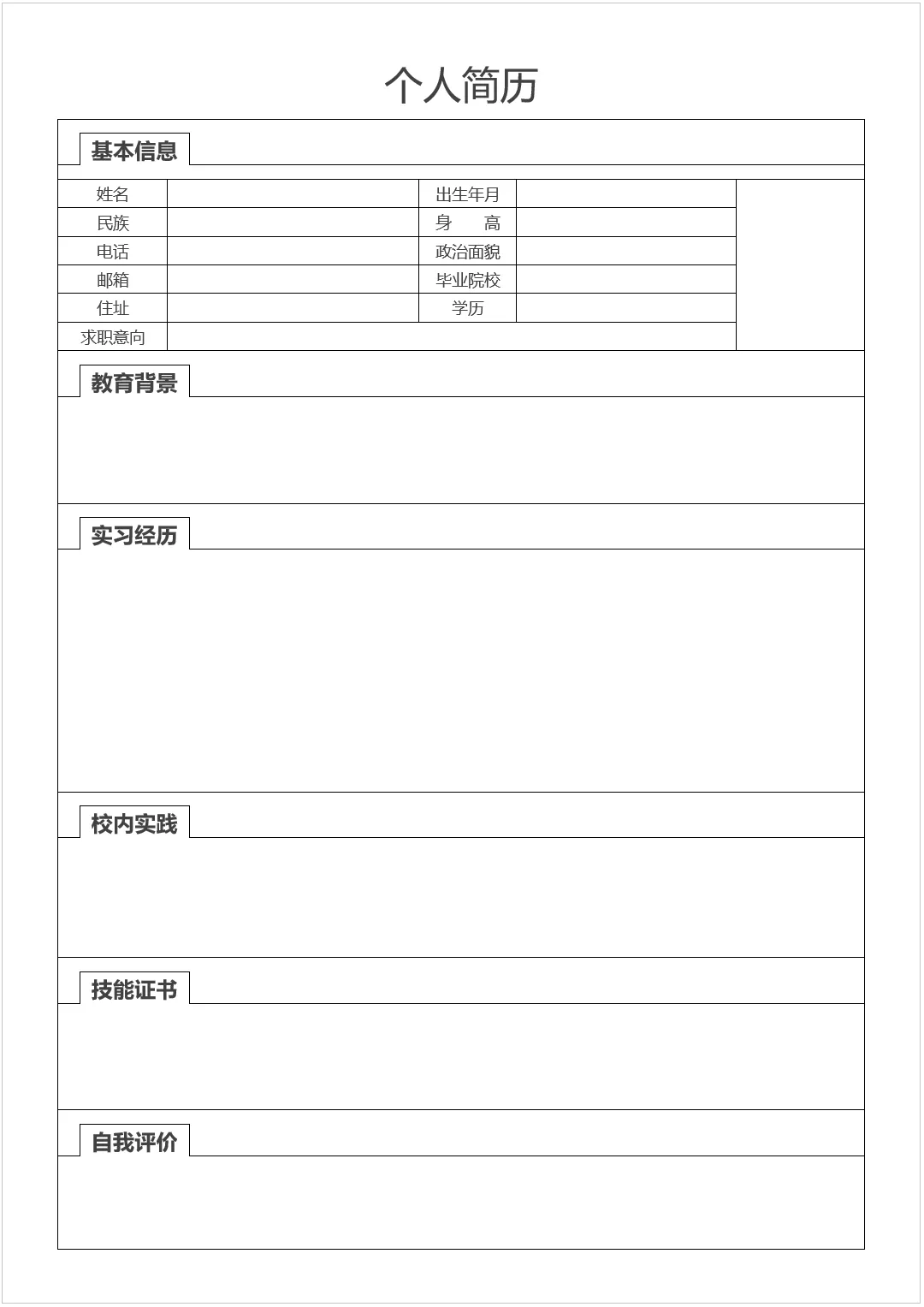 >空白简历表格免费,WORD文档电子版,可免费下载打印