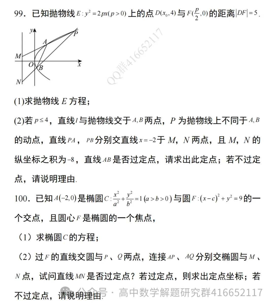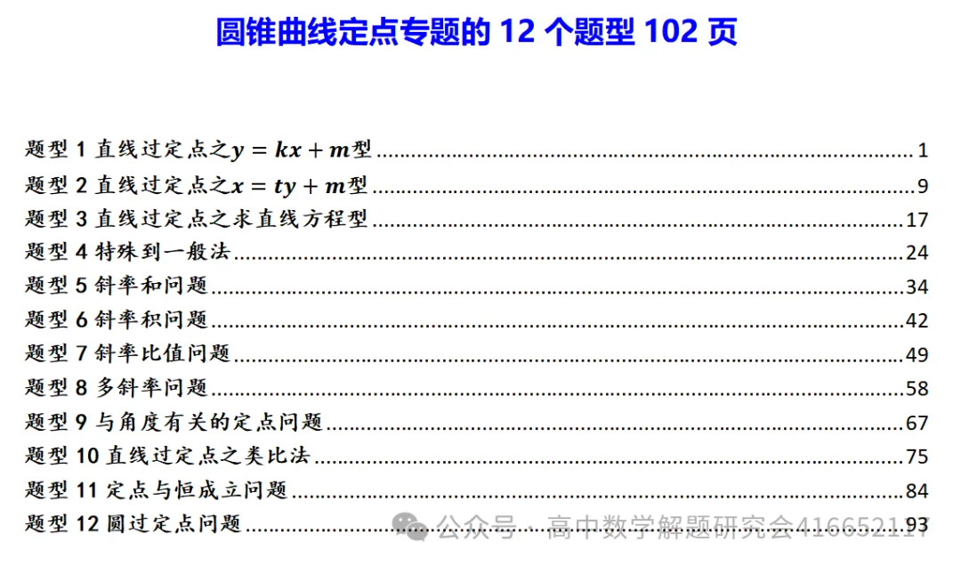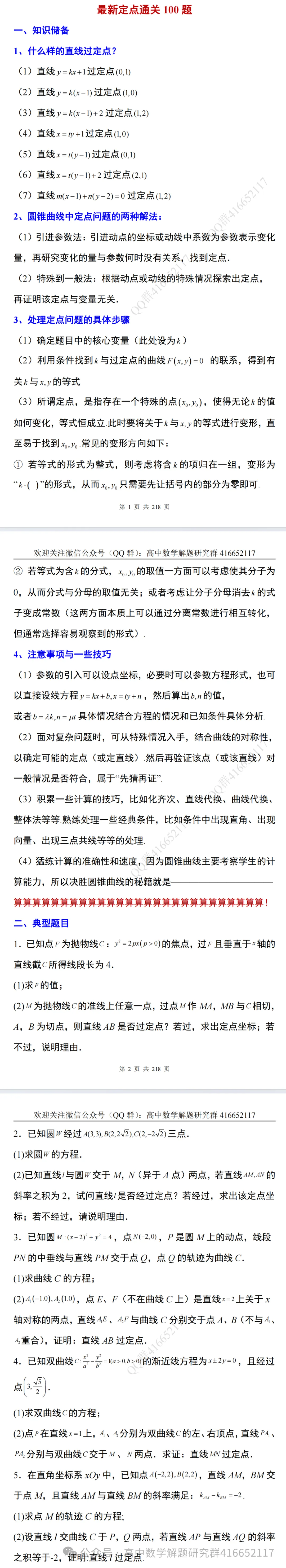 大家好,今天分享圆锥曲线定点好题100道,整理的都是结论非常有趣、体现一定思想方法、极具代表性、值得深入研究的题目。文末有彩蛋!