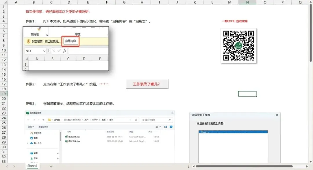 必须有!自己动手,丰衣足食!在DeepSeek加持下,磊哥2025年制作了这个EXCEL文档比对工具,直白命名为“工作表改了哪儿”,用了挺长一段时间,感觉还挺好用的。恰逢2026年元旦,无套路免费送给大家,链接放在文末。使用方法如下: