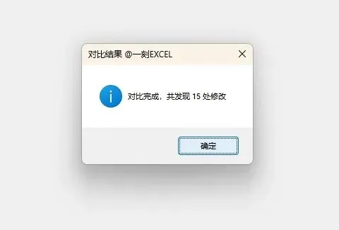 再次弹窗,提示比对完成且有多少处修改,点击确定后,修改后的文件会自动打开,并转到对比的工作表。与原始文件工作表不同的单元格会用红色背景进行区别展示。