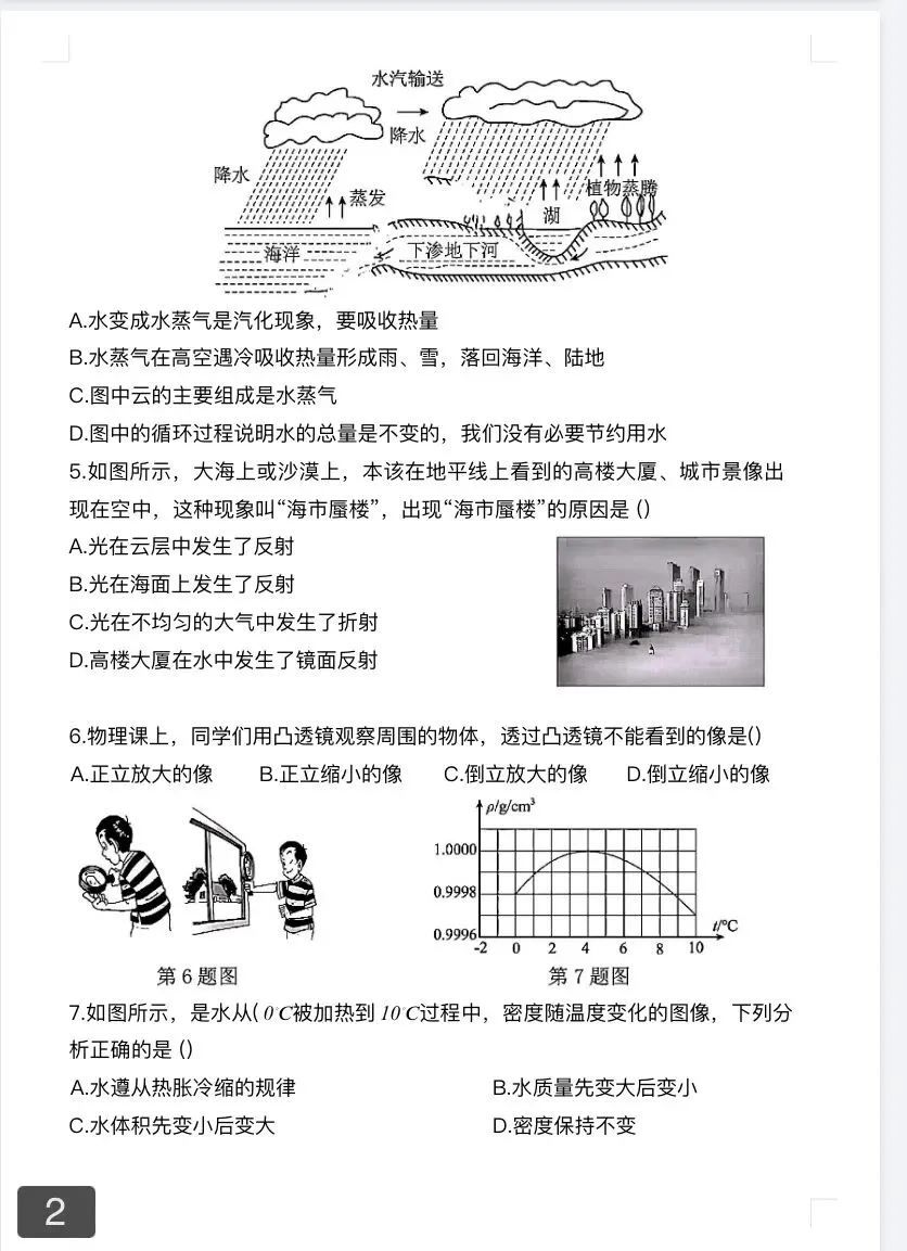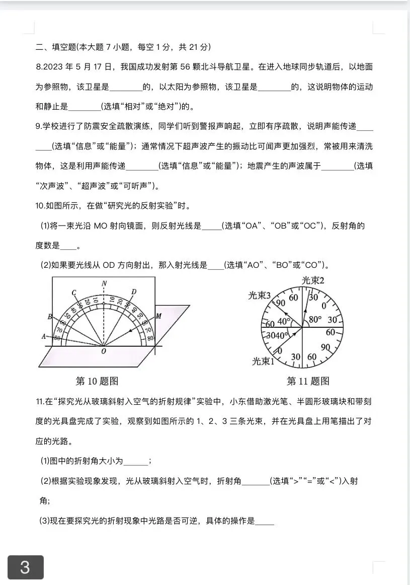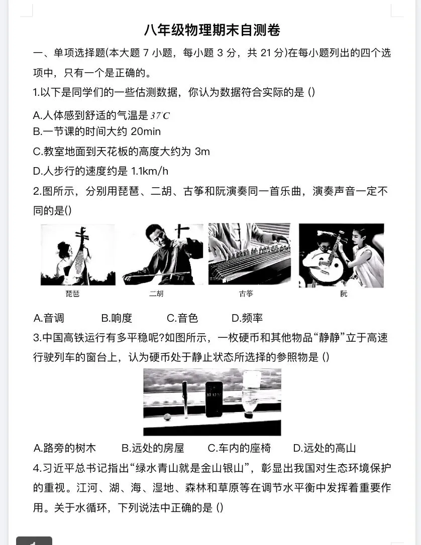 2024-2025学年八上物理期中考试试题及答案(一至四章)